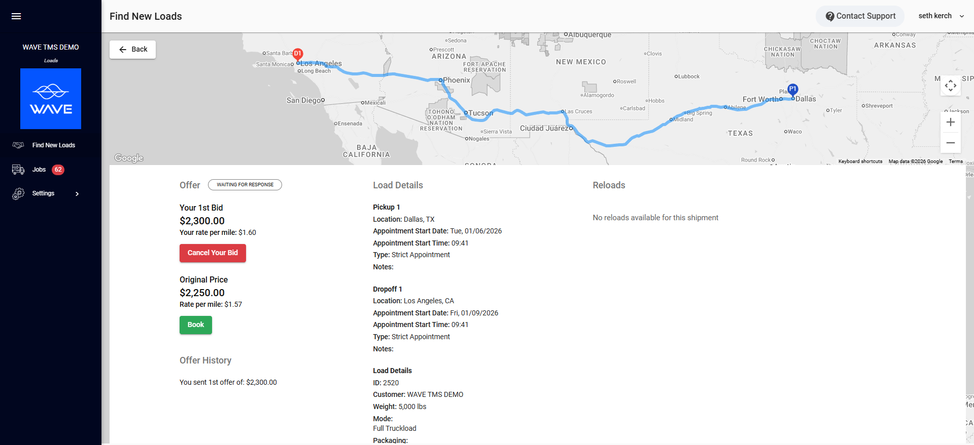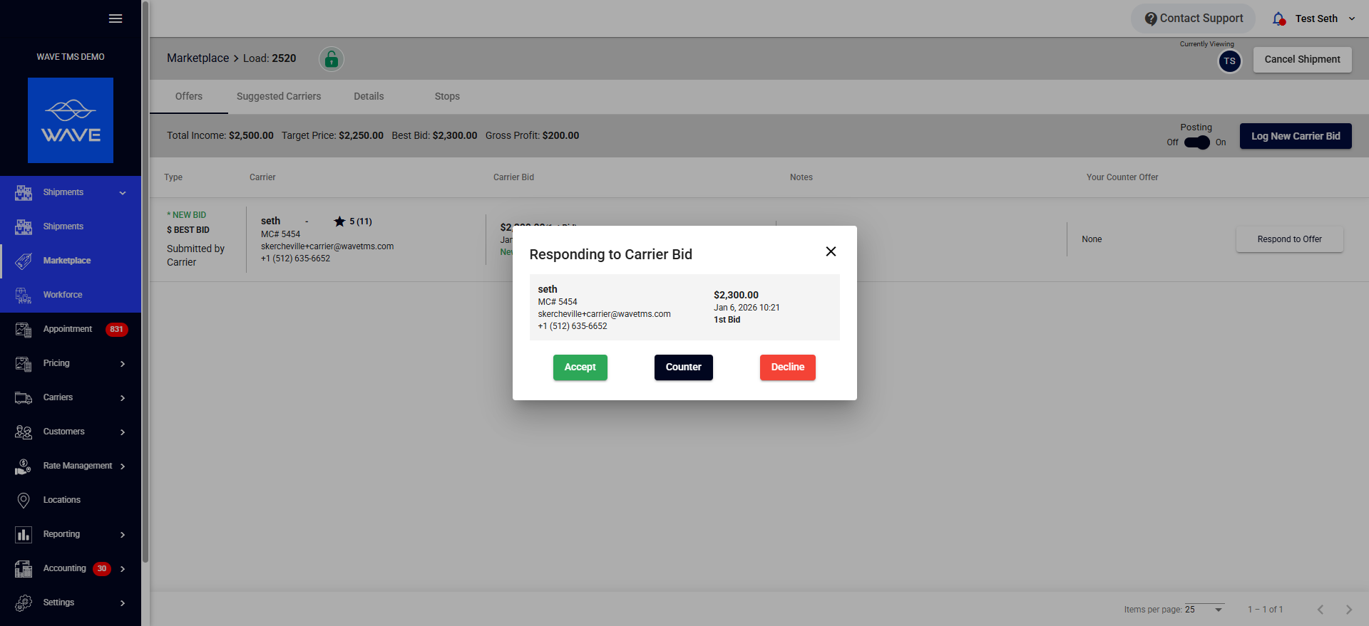 - Post loads directly to your Wave internal marketplace, where preferred carriers can bid in real time.